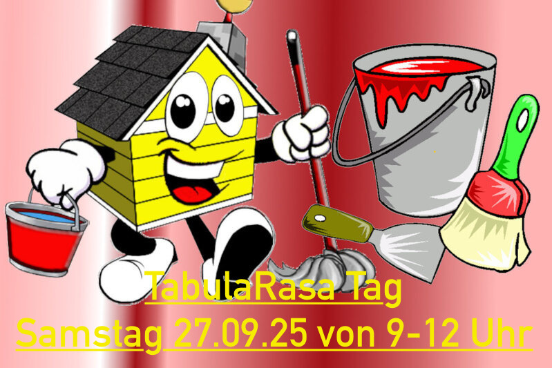 Tabula Rasa am Samstag 27.09.2025 von 9-12 Uhr: Wir wollen gemeinschaftlich wieder diverse Reinigungs- und Reparaturarbeiten im Gebäude und auf dem ...