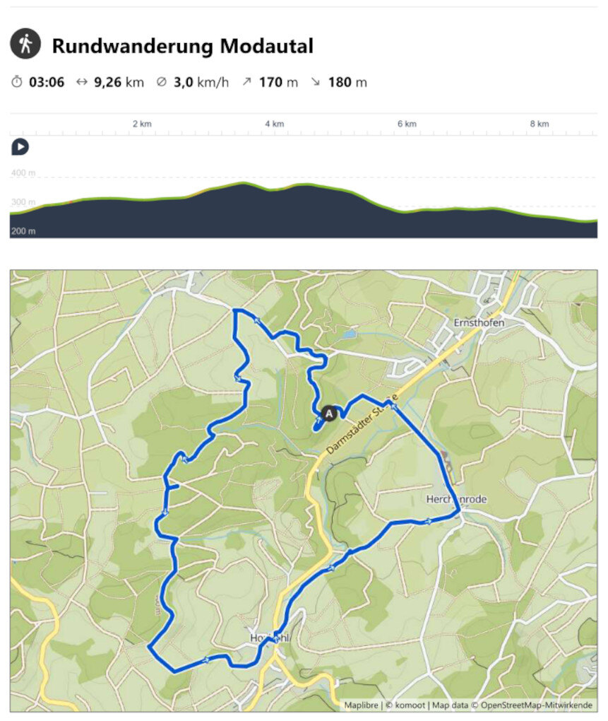10:00 Uhr Wanderung zum Friedhof Neutsch, dem Alemannenweg folgend, über den Modautaler Weitsichtweg ‚M2‘ zum Sieben Türme Blick. Weiter nach Hoxhohl, entlang der Modau zurück nach Herchenrode.